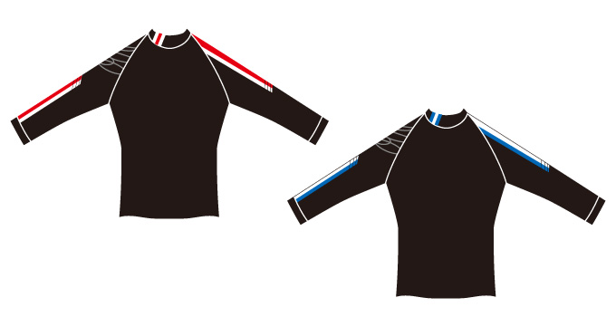 ボディに1.5mmの原反を使用し、首・袖に2WAYライクラを使用するコンビネーション。
