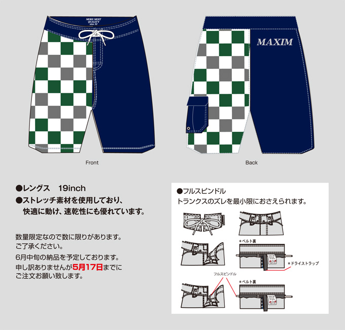 レングス 19inch、ストレッチ素材を使用しており、快適に動け、速乾性にも優れています。
